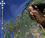 Profile: Website for a project in which a poem traveled around the world. Videos and photos of the recitals had to be represented in a straight line across the map. We chose to implement the route in Google Earth. Within it, one can zoom into the cities and villages that were included in the journey, and one can watch videos and pictures from there.